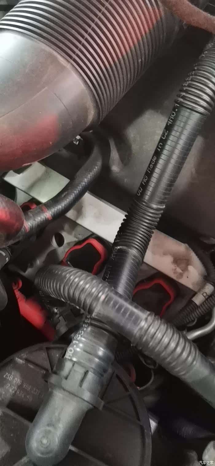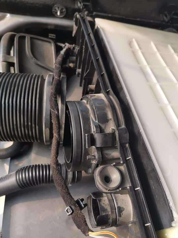 旁边2个气管的卡扣松掉,然后空气滤芯就可以很轻松的拿出来,把新的空气滤芯放上去卡扣卡紧,螺丝装回去就OK了,这么简单的操作四儿子要收大几百工时费,不是很懂你们有钱人。。。进度3/5,接下来空调滤芯