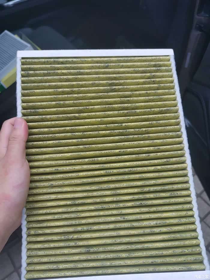 拿出之前的空调滤芯,之前用的是曼牌的FP31003闻下一股味道,这次用的是CUK31003,少了这层黄色的东西,说是杀菌我感觉是噱头