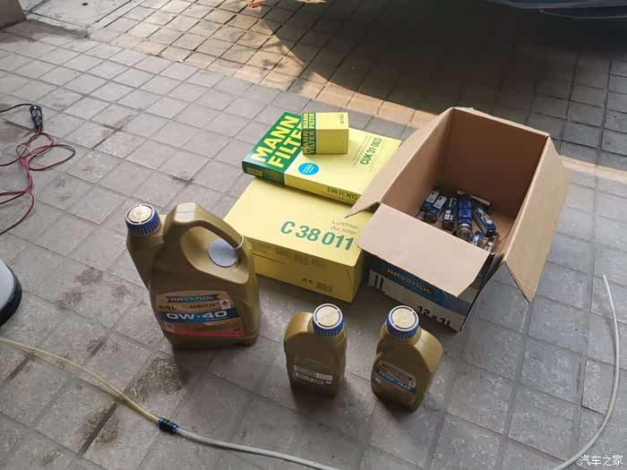 闲话不多说了开始正题,首先确定下本次常规保养的内容:换机油机滤,空气滤芯,空调滤芯,火花塞,我用的牌子是ravenol的usvo ssl机油,曼牌的3滤 bosch的火花塞,还有一些扭力扳手和套筒啥的下面再讲