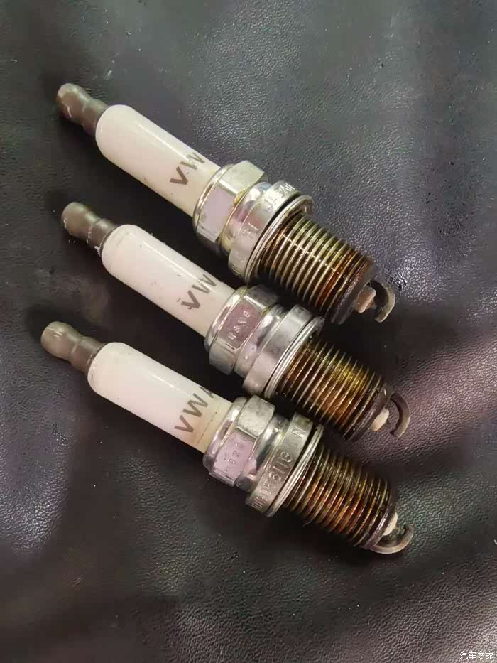 拆下来的火花塞,其实状态看着还不错,定期加PEA,积碳也没有很明显