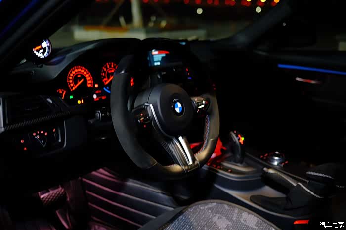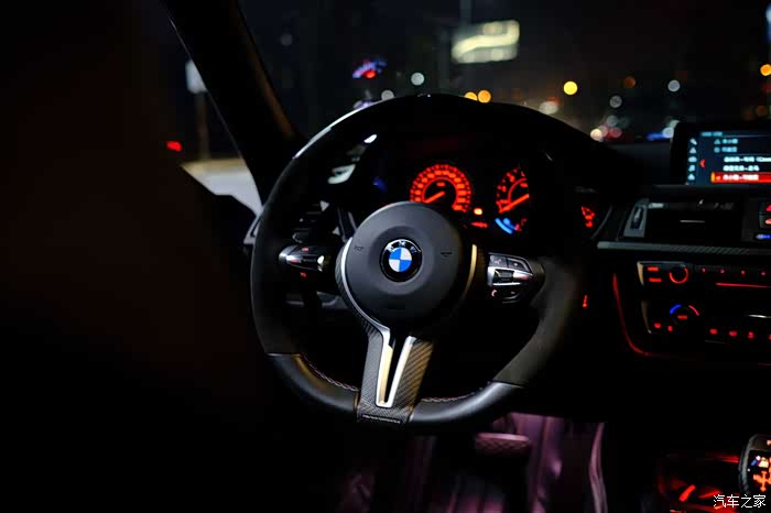 M performance v2的赛道版方向盘,蓝色回正标,alcantara+真皮拼接,手感无敌,听说涨价了。