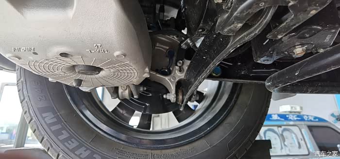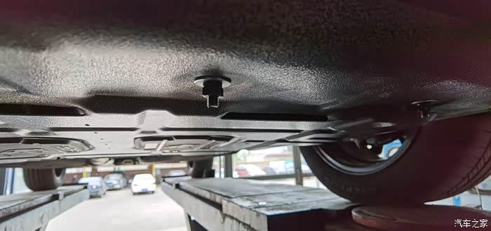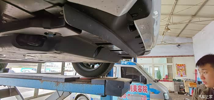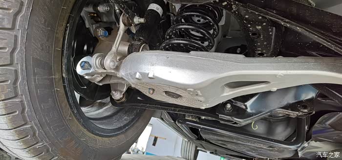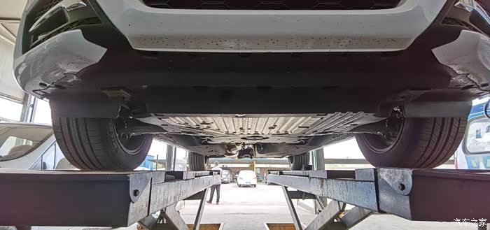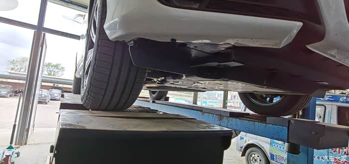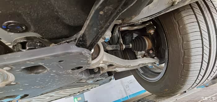 趁着安护板看看大白悬架,用手感觉了一下,铝制件很厚实!
