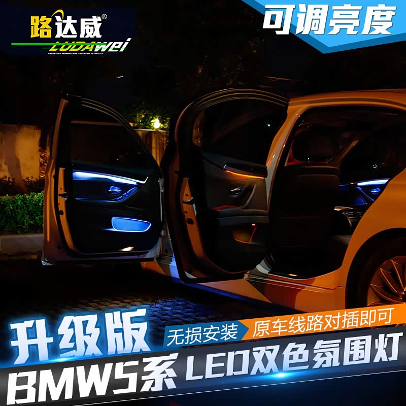 路达威专用于改装宝马5系 车门内装饰灯条 双色氛围灯 室内氛围灯