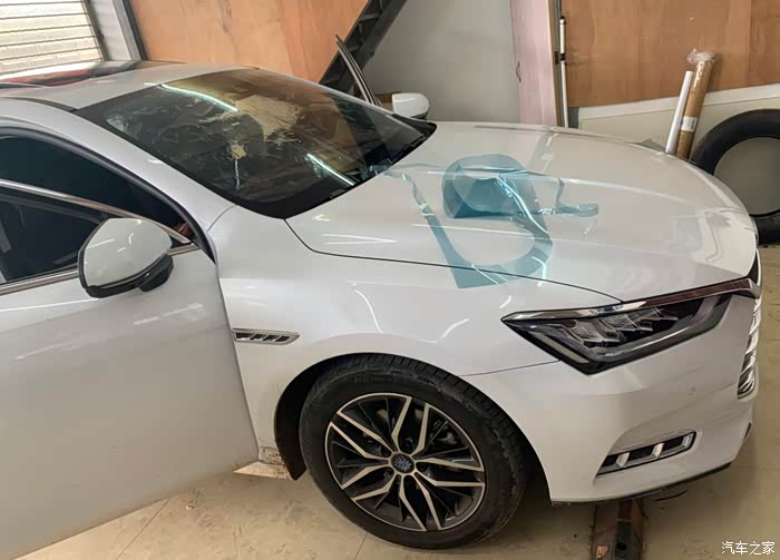 提车回来就找朋友买膜了,量下尺寸,前档贴个顶级龙膜哈哈