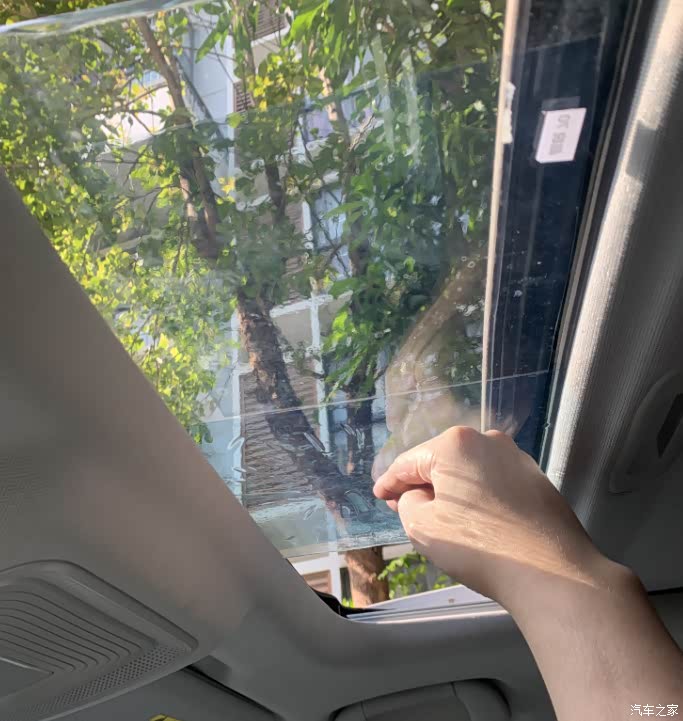 得先进行实际测试,秦PRO的天窗真方便,刚好开一半,玻璃卡上去就能测试了,第一步是测试热量穿透率,用手大概感觉就行了,基本上10%以上的区别能感觉出来。
