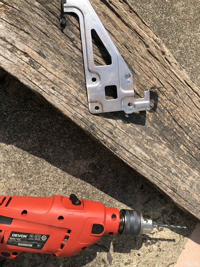 原车支架只能上一颗螺丝,量好位置,电钻招待,