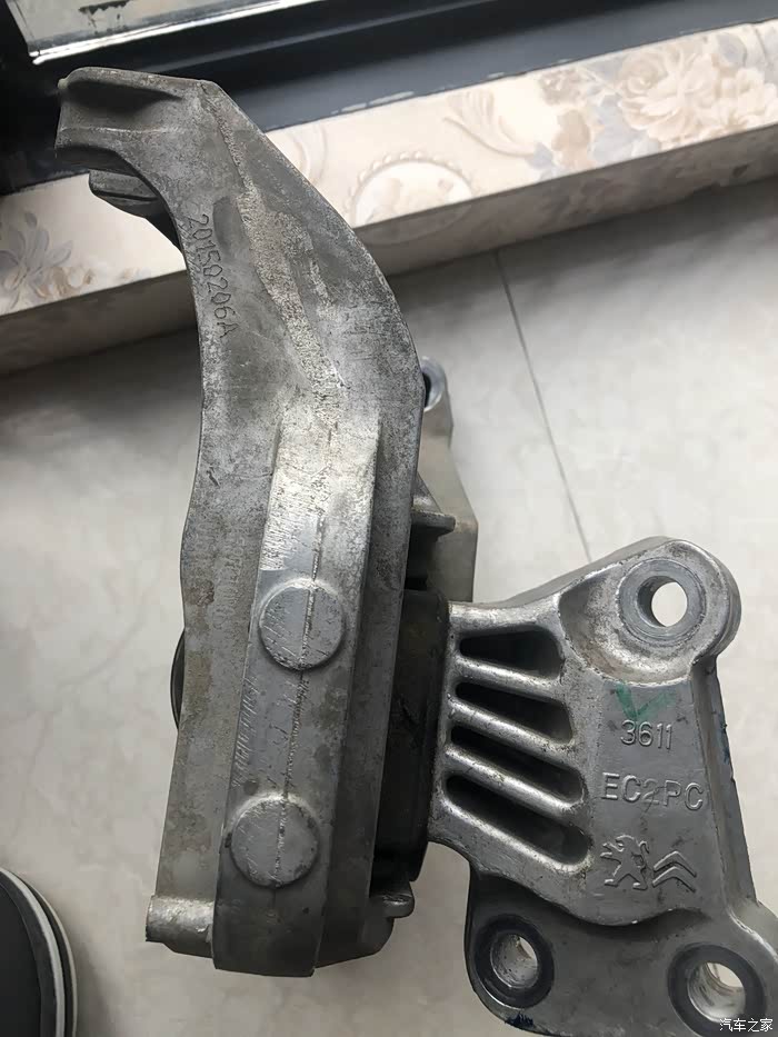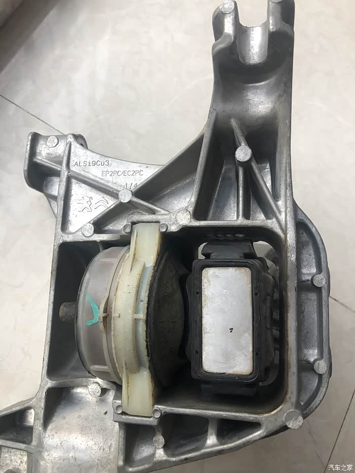 这是原车拆下来的发动机机脚,其实早就坏了,我只知道车里震动挺烦人,不知道是发动机鸡脚的事