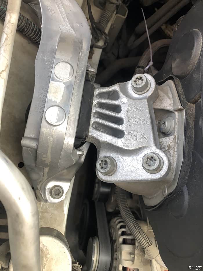 这是更换以后全新的发动机机脚、正时皮带套装也安装完毕。因为时间较长,没在店里看咋换的。