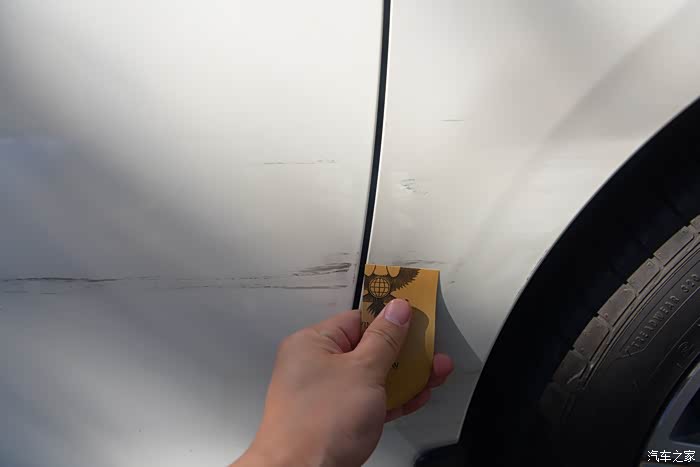 有刮痕的地方,力道稍微大点,漆面上的印子就可以消失掉。