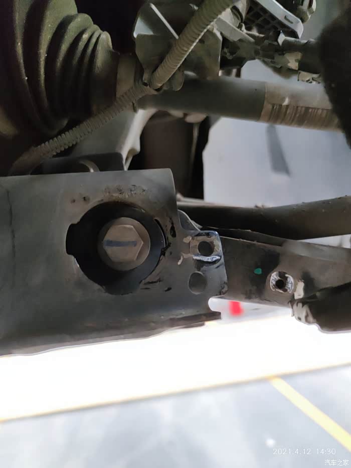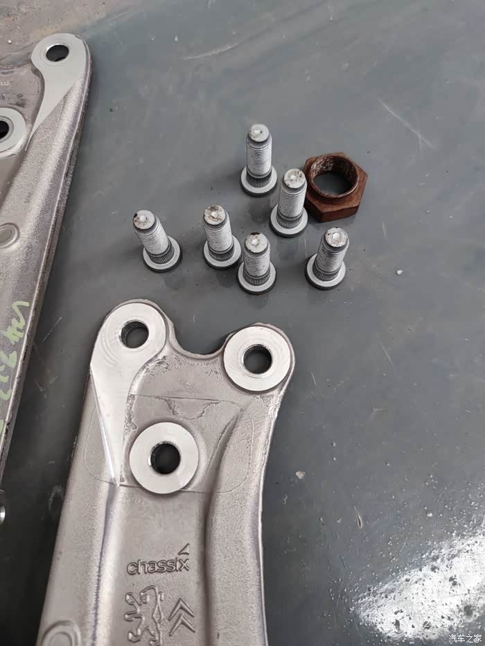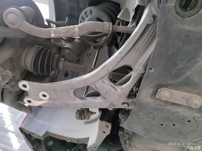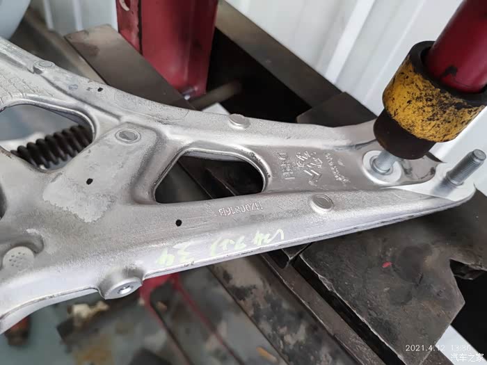 很快就拆掉了冲压钢板下托臂,对比了一下孔位相符,开始安装