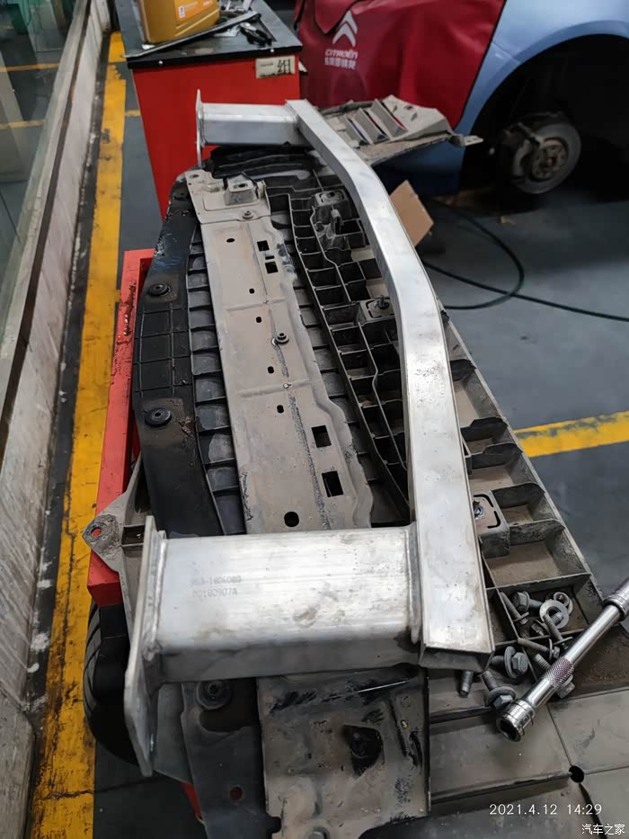 行人保护防撞梁和水箱下框架都拆下来了