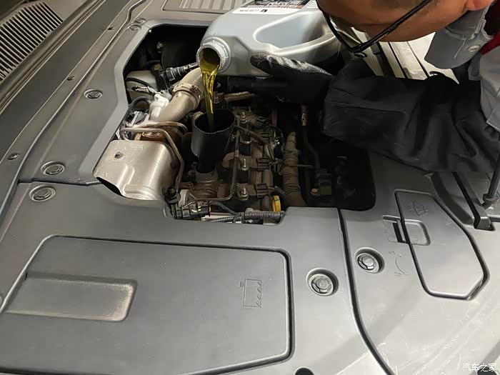 开始加注新的原厂合成5w-30机油,选择全合成可以更好的保护发动机,让其发挥最佳性能.