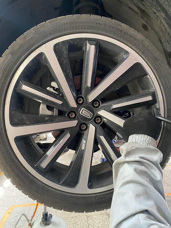 检查胎压,这里重点说一下胎压的重要性,日常行车一定要注意爱车胎压,不可过高或过低,胎压一般保持在2.5bar左右就行。
