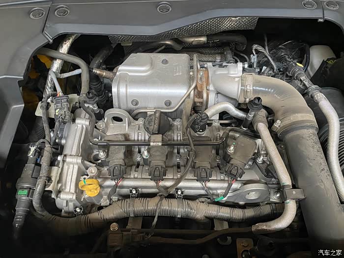 将车辆放下,拆除发动机盖板,检查发动机表面有无渗油.由于发动机表面有盖板,给保养检查增加了一道工序,但可以阻挡一部分灰尘进入。