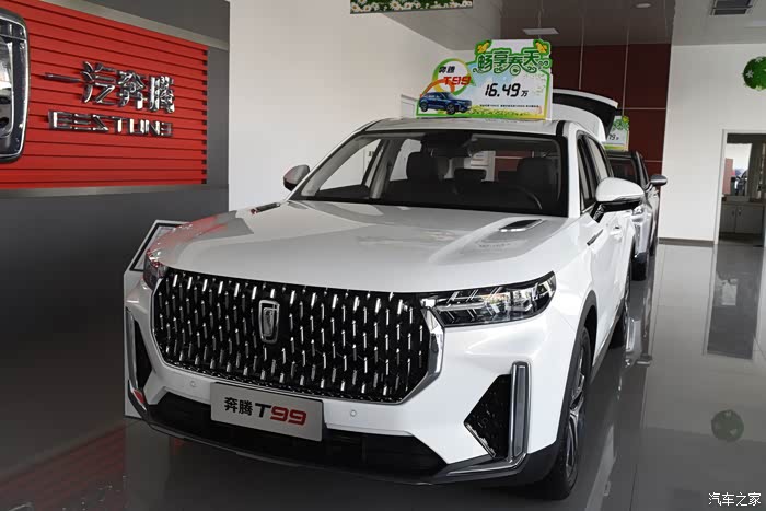 T99给我的第一印象就是特别霸气,底盘高,车身硬朗,而且前脸儿的视觉冲击力也很强,气质这一块确实拿捏了。况且个人感觉奔腾的车标也比较上档次,至少看着一点都不比合资品牌差。