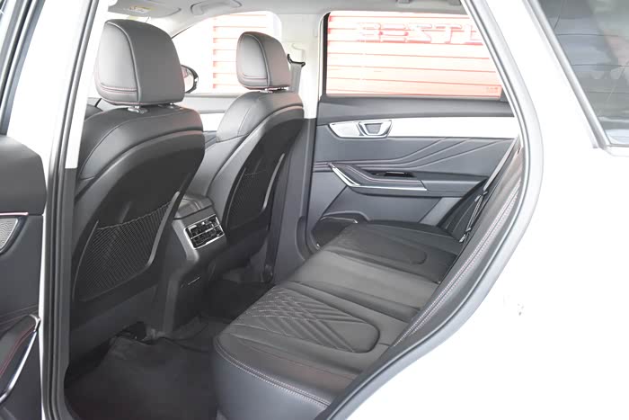 看后排就能感受到大轴距的优势了,前排调整好了后排空间还是很大,完全可以翘个二郎腿。而且靠背的角度也恰到好处,没有特别直,往上一躺还是挺舒服的,适合家用。