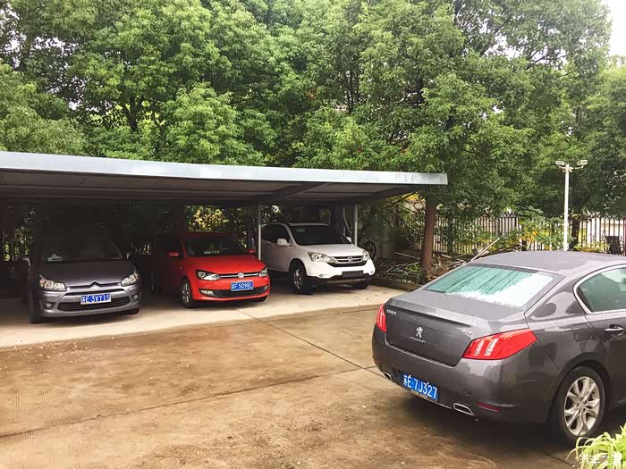 公司的停车位,不怕风吹雨淋
