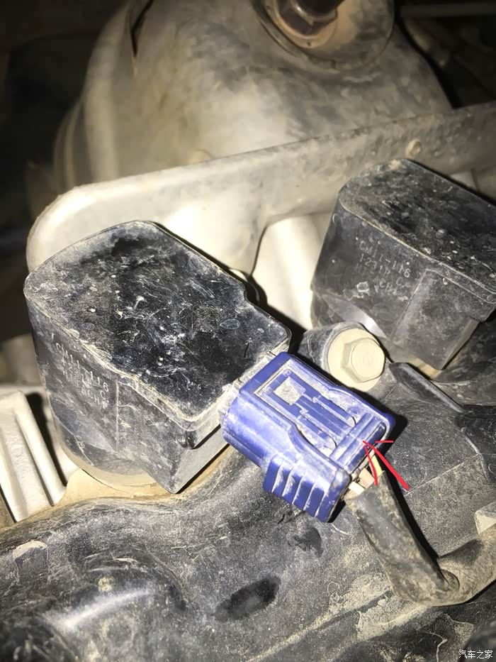 黑色的就是高压包,旁边有个小螺丝固定 用10的小套筒拧下,盲操作要确认套筒吃紧了螺丝头才发力搞滑了螺丝头就有得折腾了。用手压住红箭头处确认卡扣那头翘起来了就往外拔。拔掉线拆了固定螺丝后就可以拔出高压包