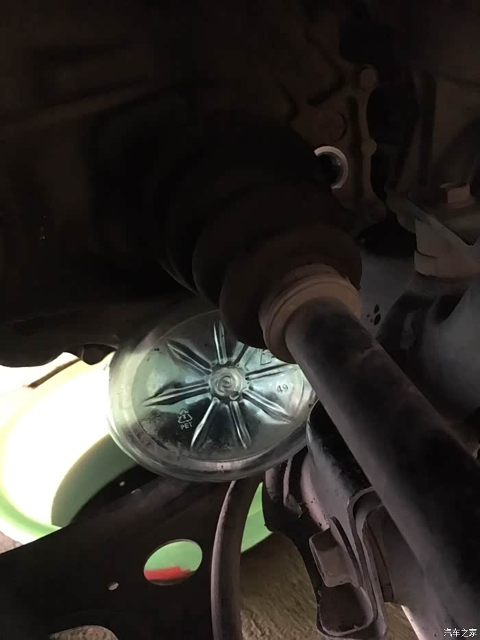 没拆护板放油时会接不住,用个洗洁精瓶引流到下面的盆,自家车库也不能弄脏。