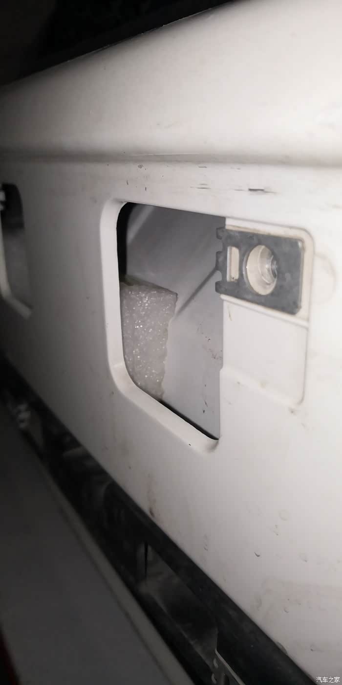 前杠车牌的位置处也要塞三块厚度合适的海绵,来支撑起前杠,这个方法之前有车友发帖过,这里再加固一下。