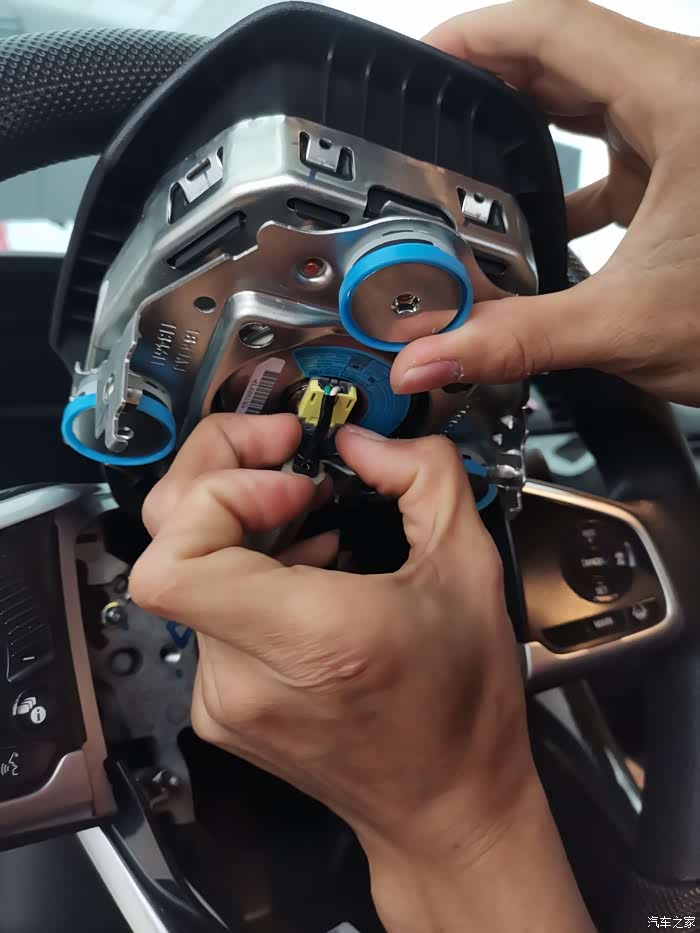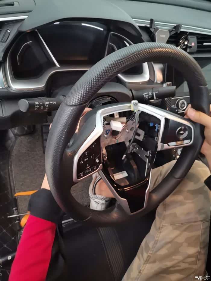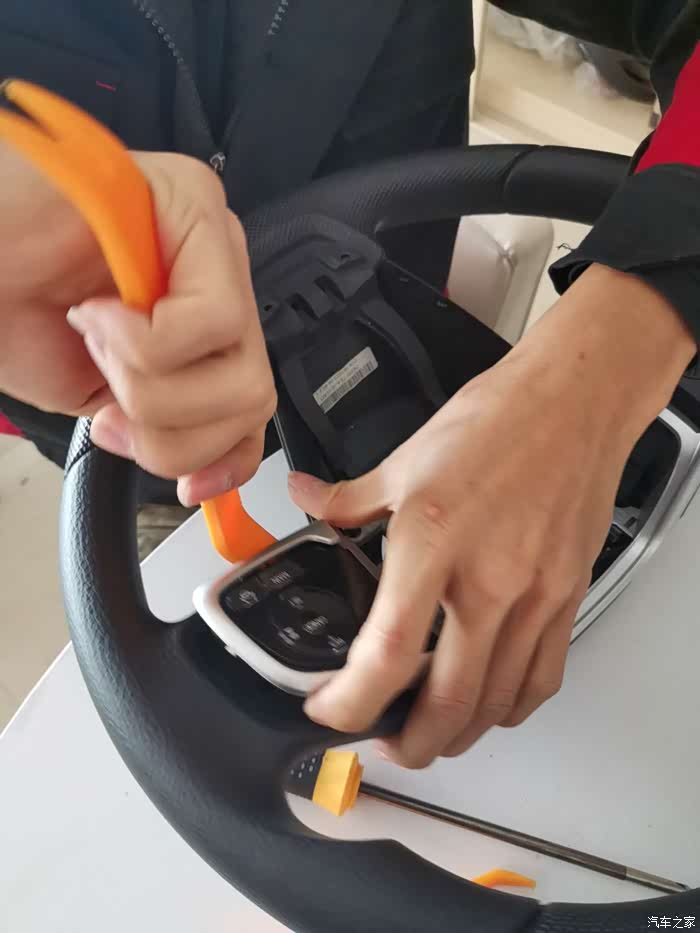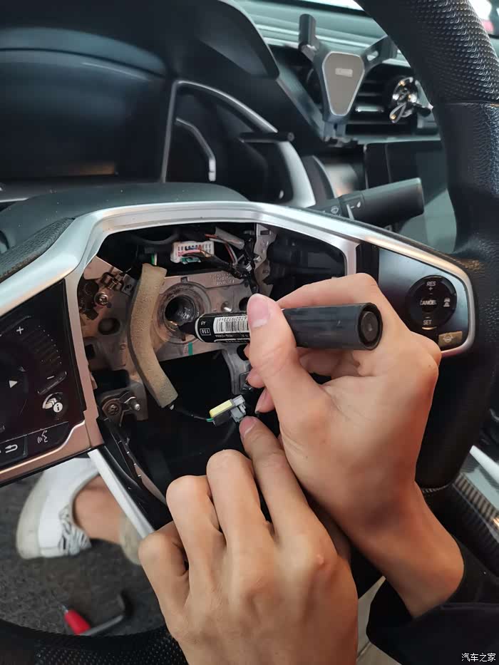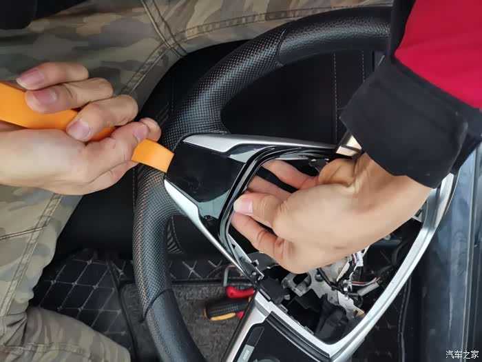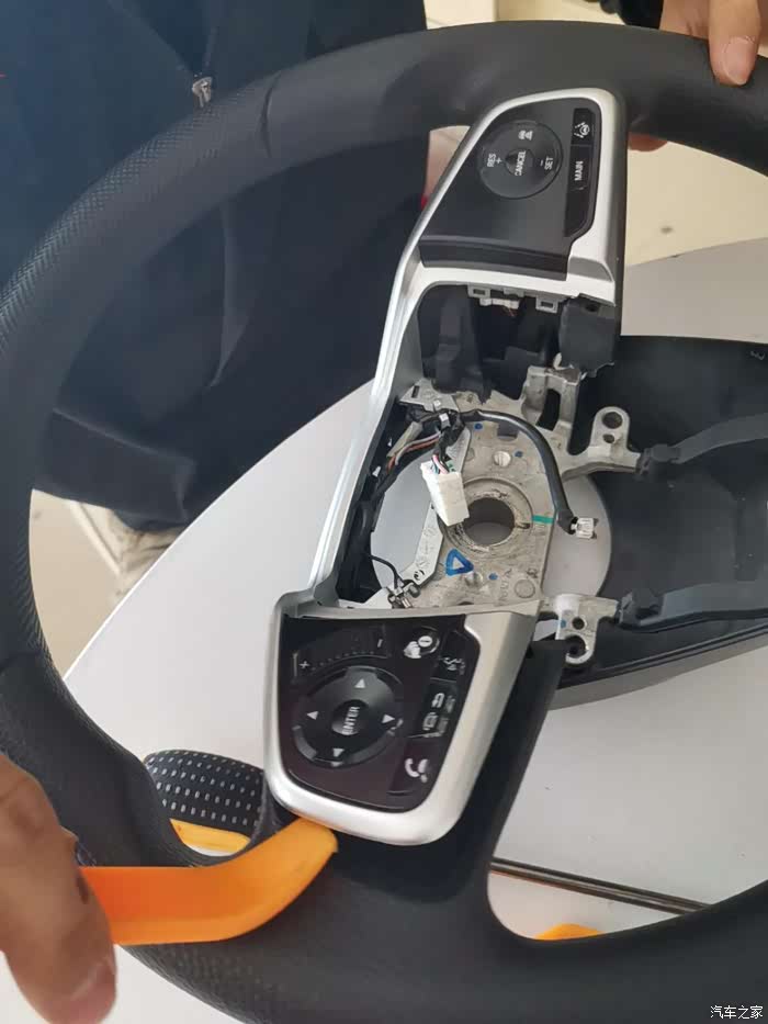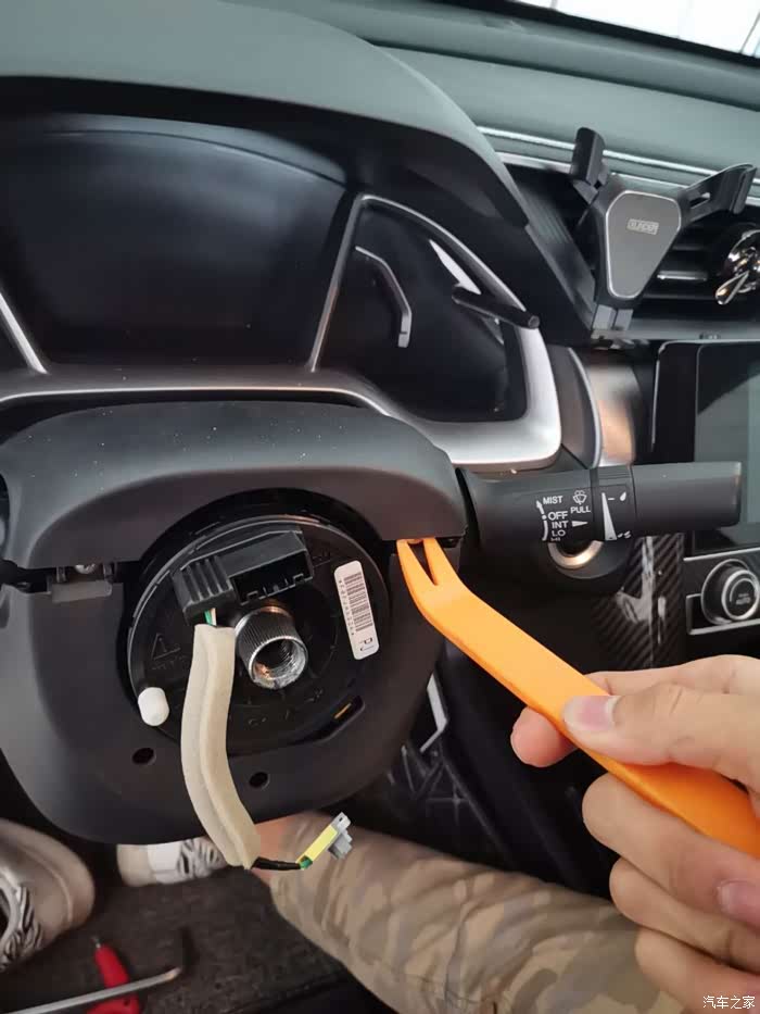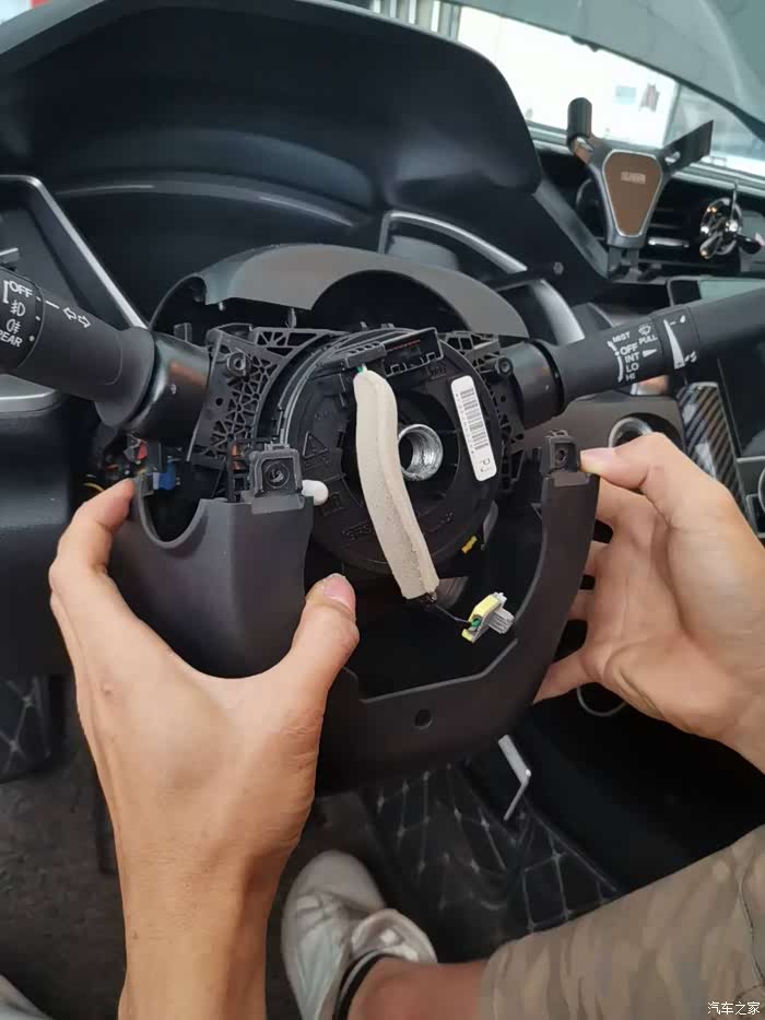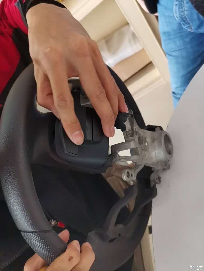 画好的记号直接取下方向盘,可能比较紧,拆了螺丝用力拍一下震动方向盘就可以拿出来