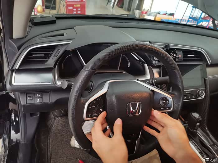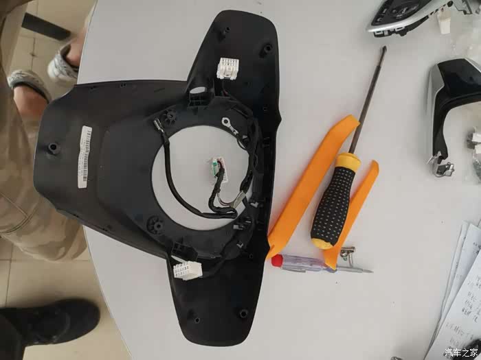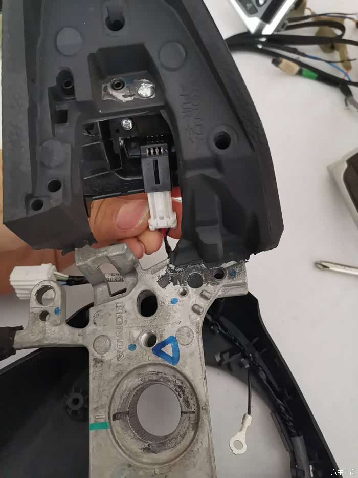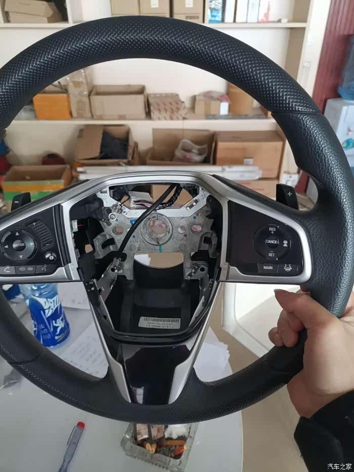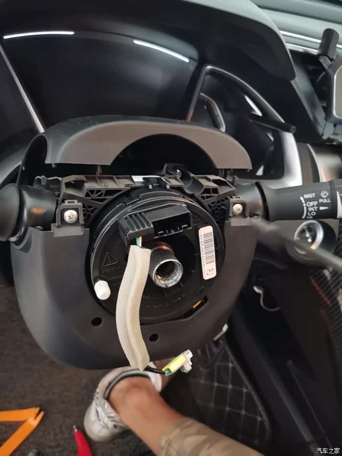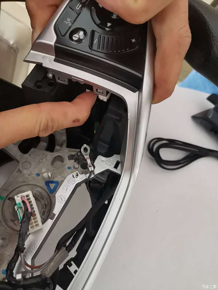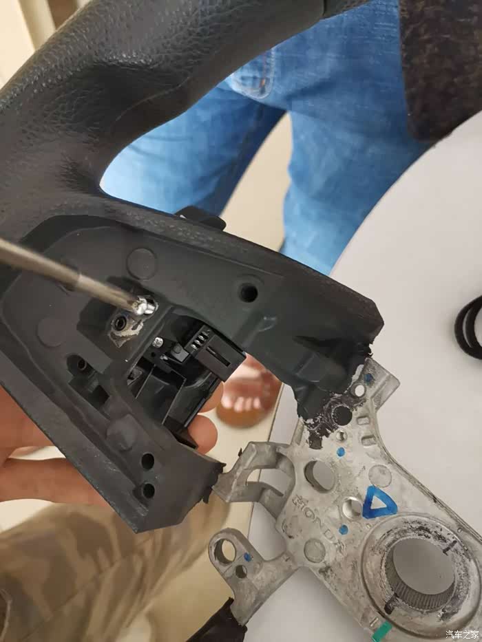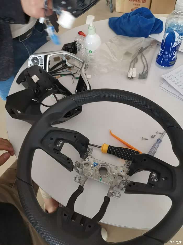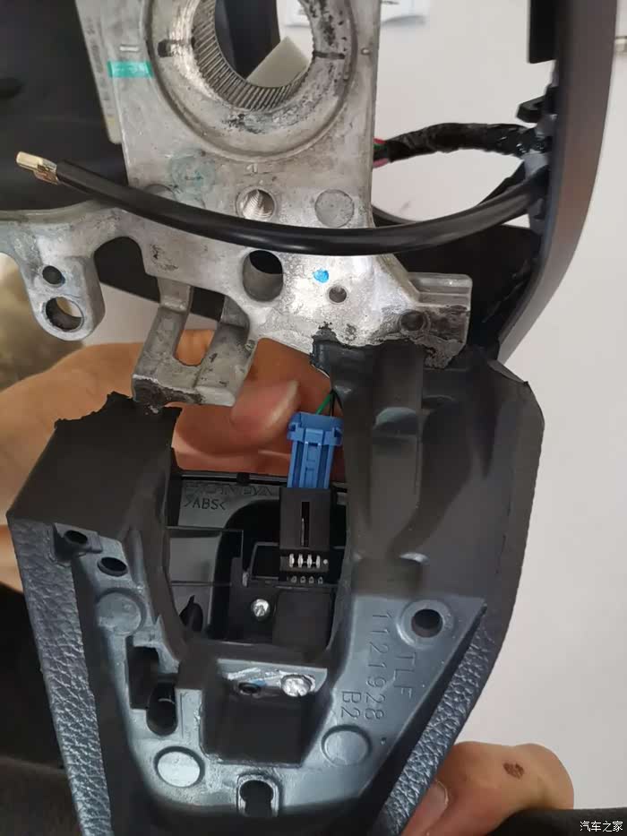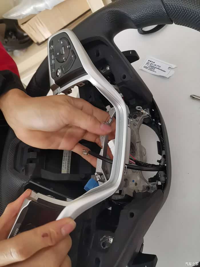 画好的记号直接取下方向盘,可能比较紧,拆了螺丝用力拍一下震动方向盘就可以拿出来