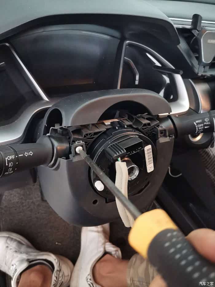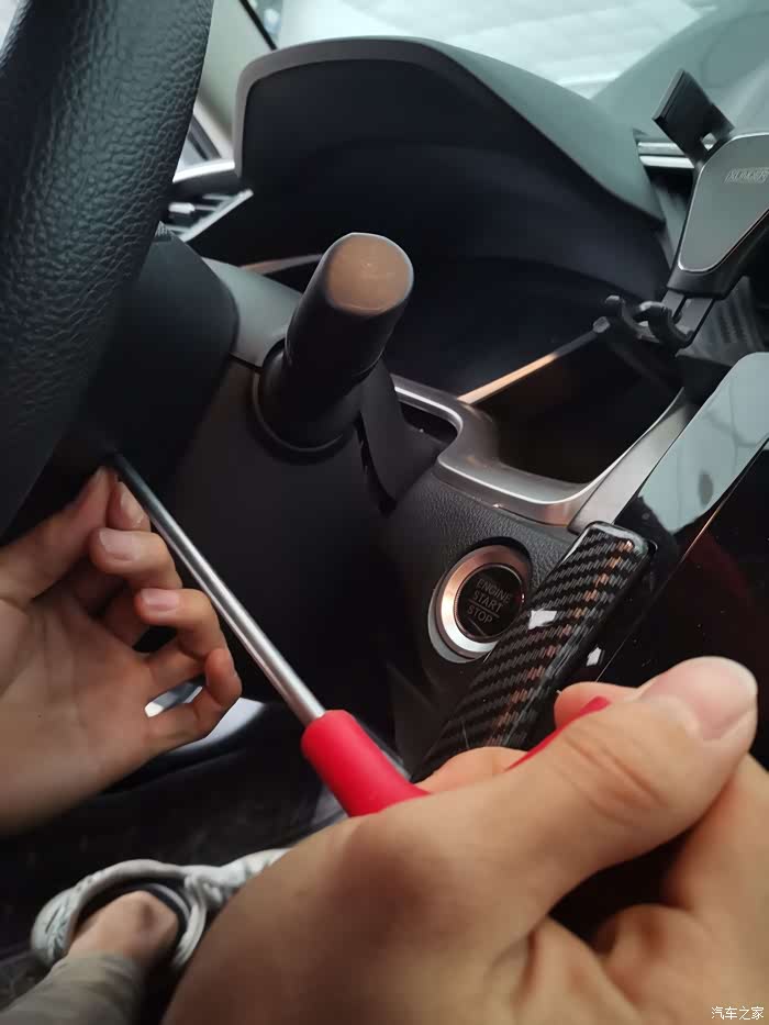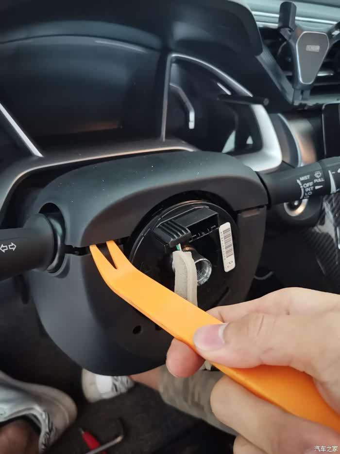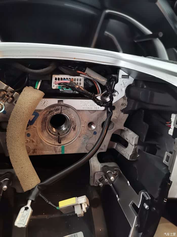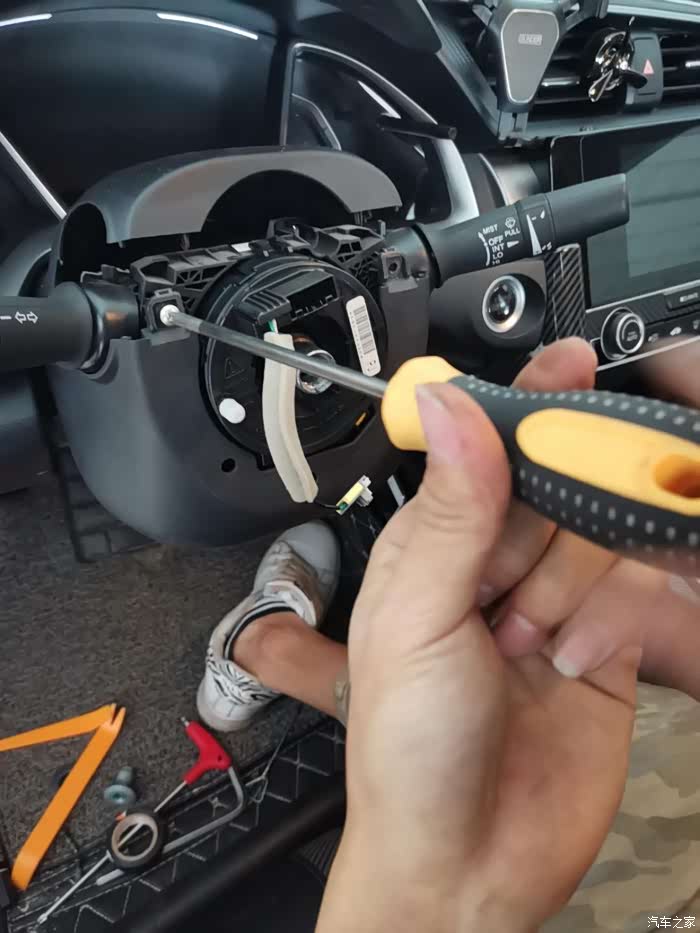 现在用10mm内六角+加力杆拧松方向盘中间螺丝(没开钥匙方向盘是会自锁住的,所以直接拧中间螺丝)