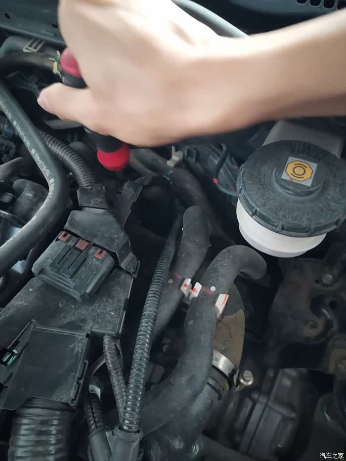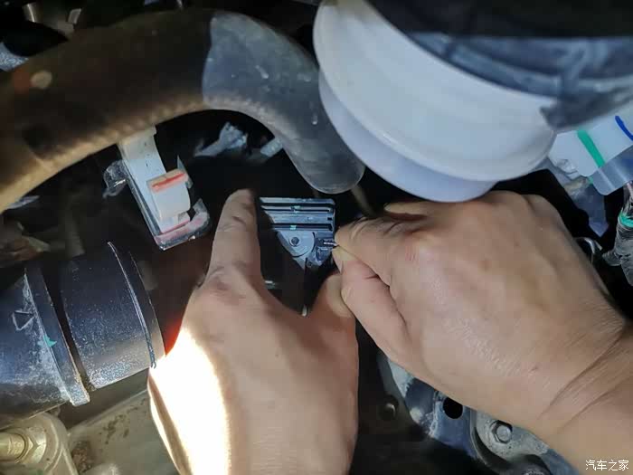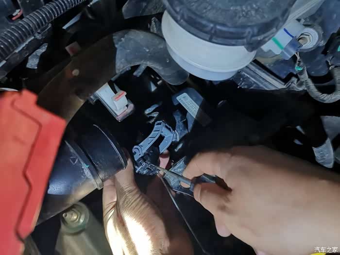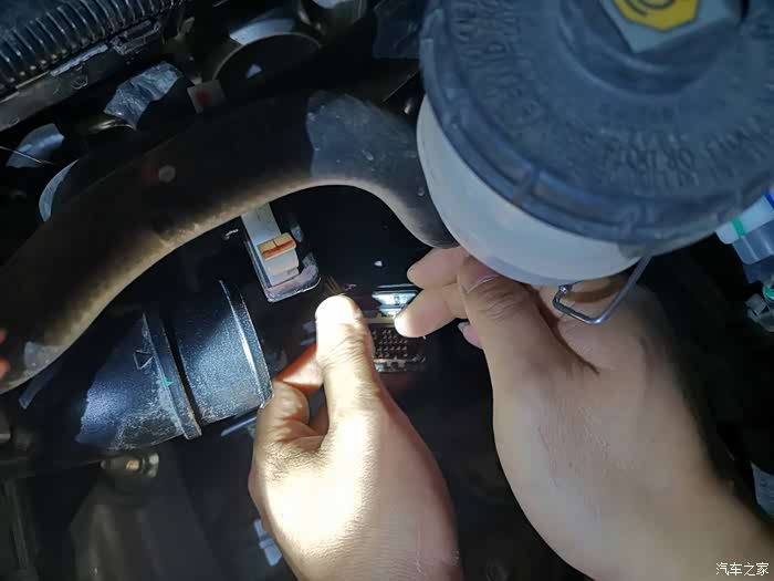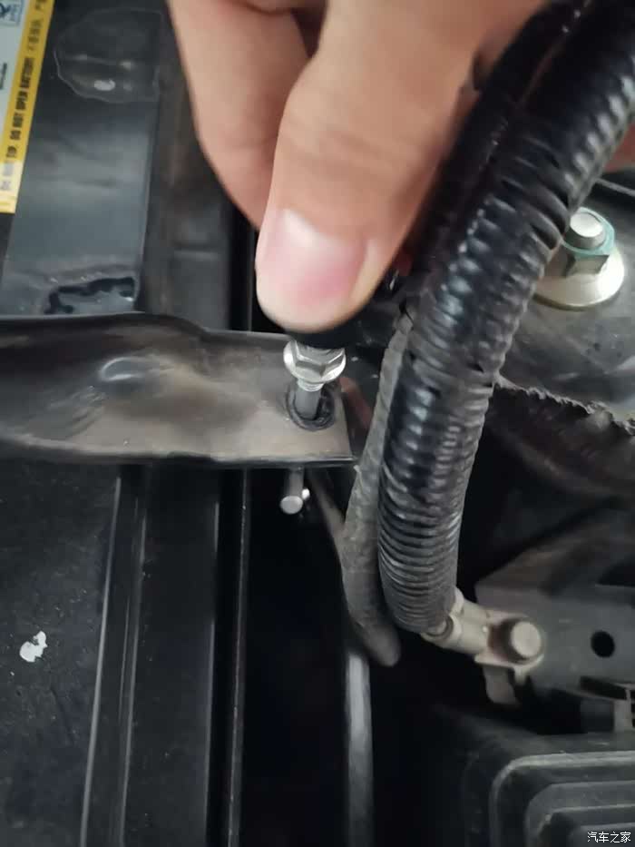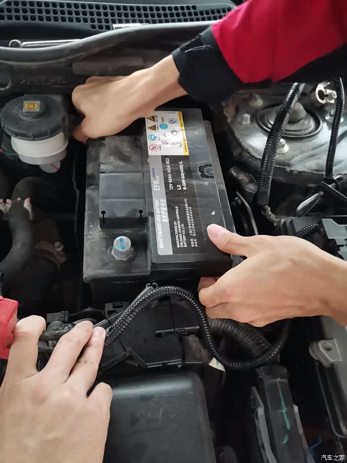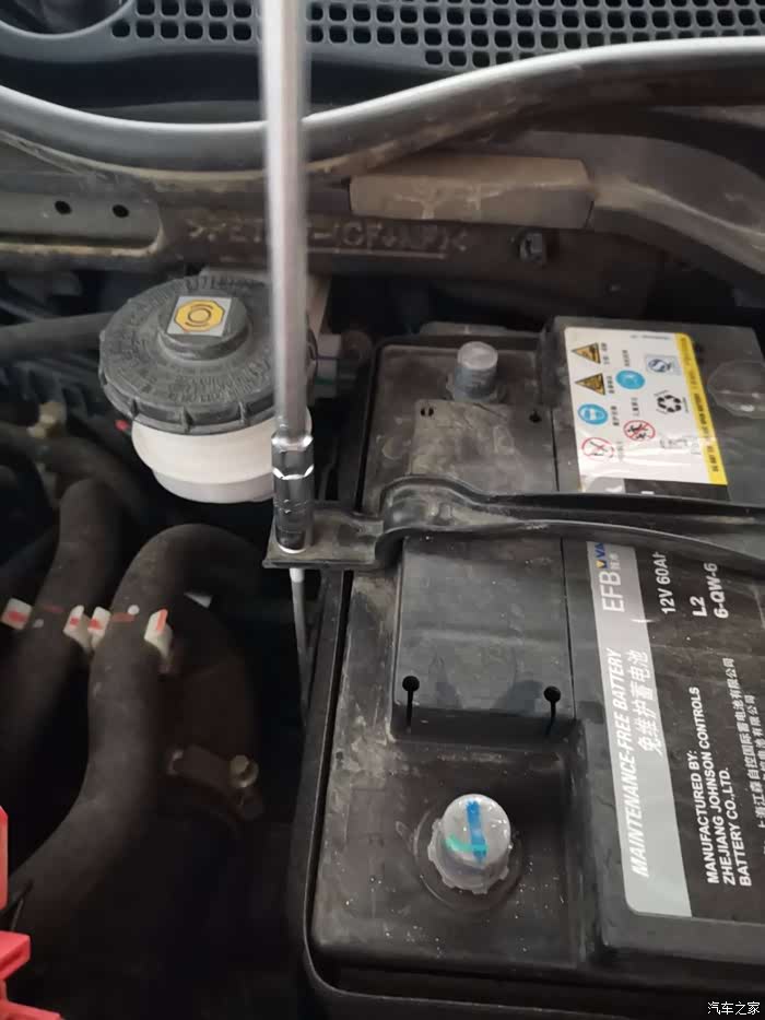 拿开电瓶,拿到时候小心些,这个电瓶没多大位置抓的稳,比较重