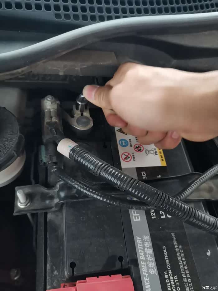 开始拆外面,给TCU加拨片信号线,先拆电瓶负极,再拆正极