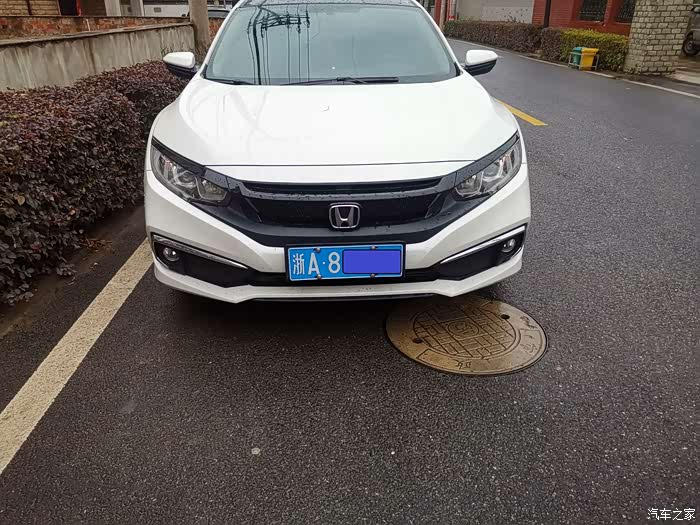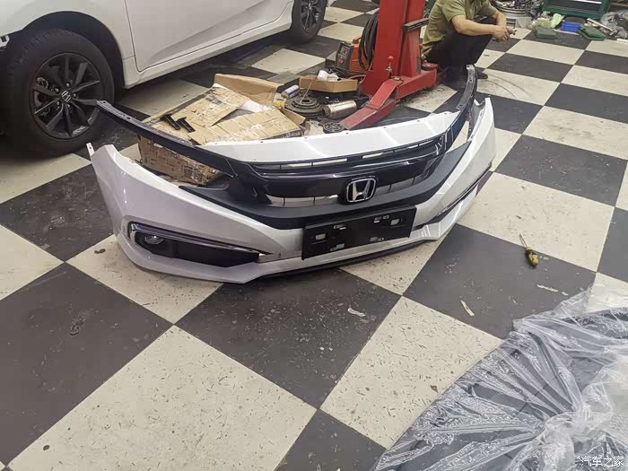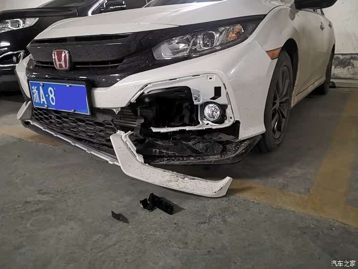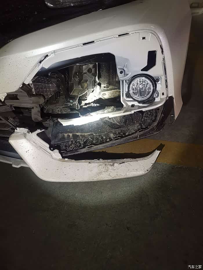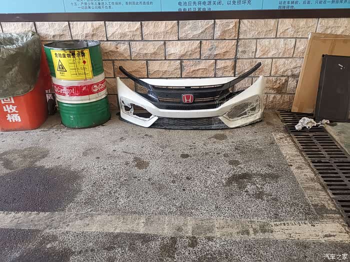 那是一个下着雨的傍晚,灰灰的天空,堵着车,在一个路口掉头的时候,前保不幸撞上了马路牙子!!!!心痛啊!