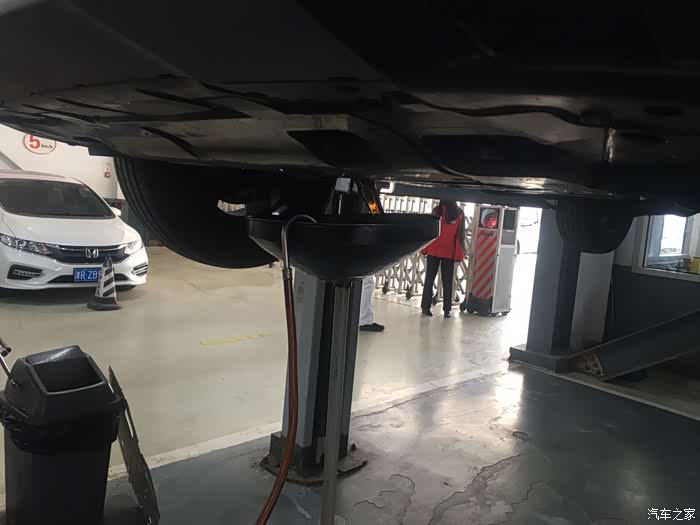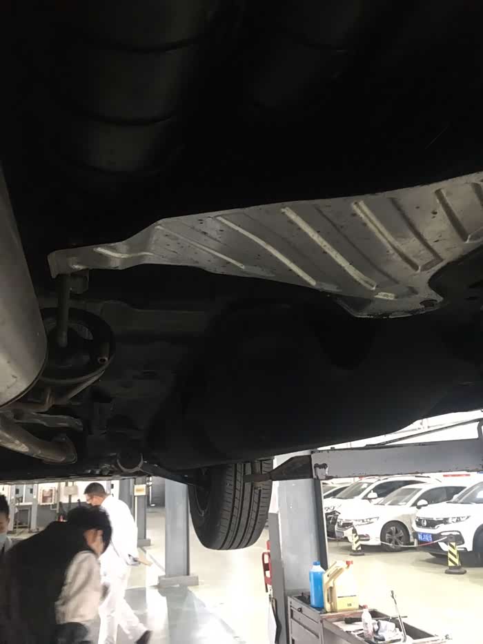 和技师沟通后,我进入车间现场观摩。说起在4S店保养,上次保养我家的小雅还是在7/8年前,后来就直接外面保养了。虽然是老司机,但是进4S店保养方面确实是个新手。进来的时候,车已经抬起来了。