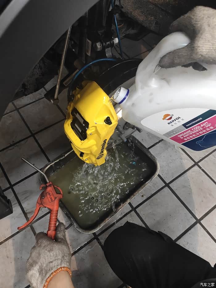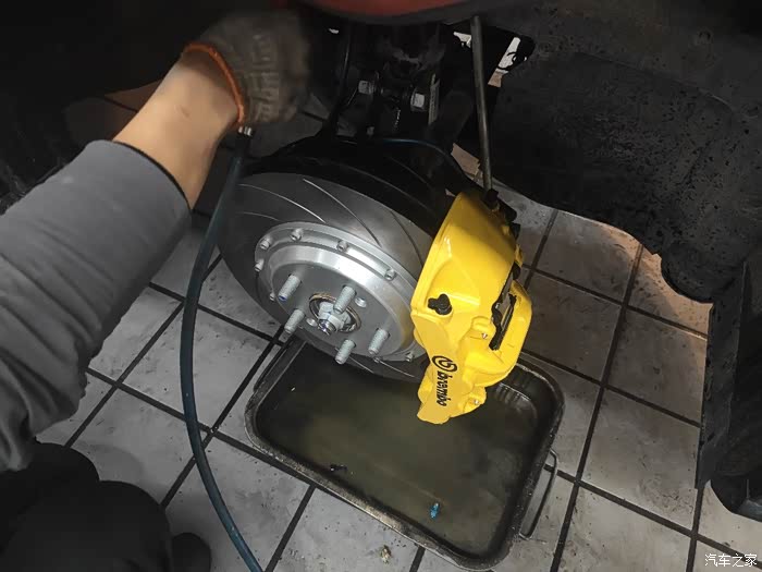 安装改装刹车重重要步骤 就是 排空气 一定要多踩多排空气 才能达到最好的刹车效果