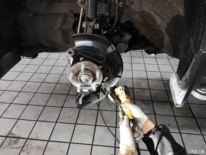 由于改装刹车盘要比原厂盘要大很多 所以不得不切割掉原厂防尘板 因为不切割的话 会碰到里面的球头
