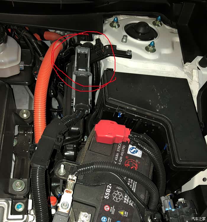 从中间这个孔穿过去,从发动机仓把线拉出来