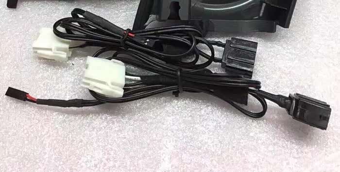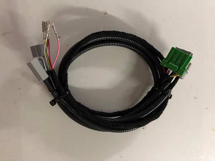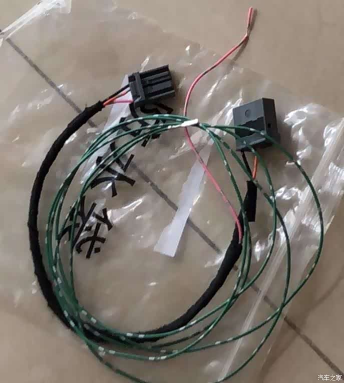 这是卖家配的线,插头在主机后特定的插口对插没问题,红色线让你并上主机电源的ACC线,绿色线拉倒驾驶位左侧下面的绿色插头和倒车灯的绿色线连接,基本这两个线都是让你破线來连接,当时觉得反正我扎多几圈胶布也就没啥事了吧。