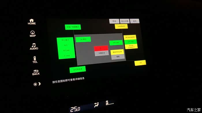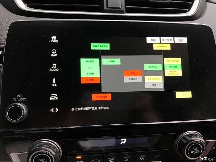 设置carplay的方法,先按屏幕的电话键+月亮键+音量键进入系统菜单,然后选择”详细信息?设置“->"功能设置"->"其他"->"智能手机信息"依次点选上面标签[Android Auto]-关,[Car Play]-开,[Honda CONNECT]-关就可以使用carplay了。