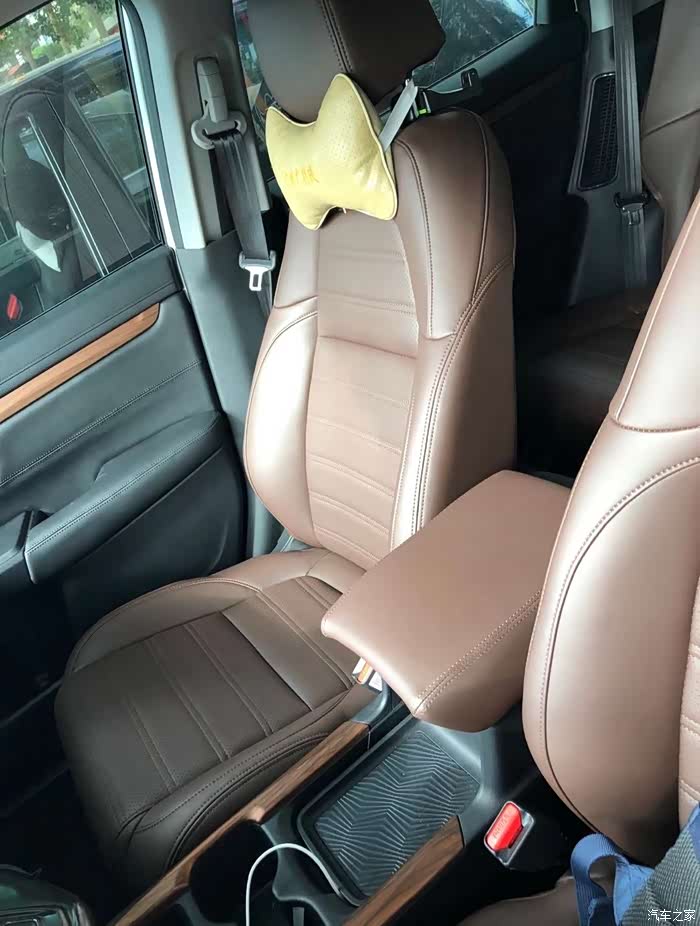 原车的布座椅非常舒服,但是座椅两边、扶手箱、门板上不知道本田用的是什么布料,一碰就脏,没几天就一层灰白灰白的看着非常不顺眼,本来想用个一两年等小孩大点了再去换成皮的好清理,没办法,这么容易脏所以坚决要换掉,顺带连方向盘也一起包了皮了。