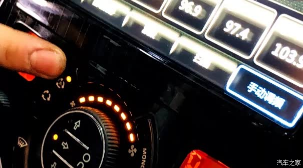 10关闭所有出风口,打开左侧通风口,启动空调内循环,打开AC开关;