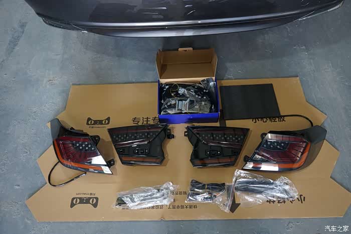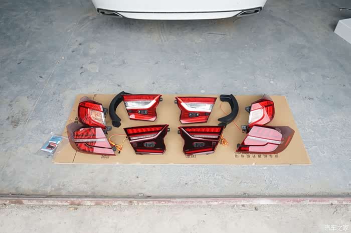 奥迪尾灯准备上车,这是红色款式的,还有熏黑款式的。