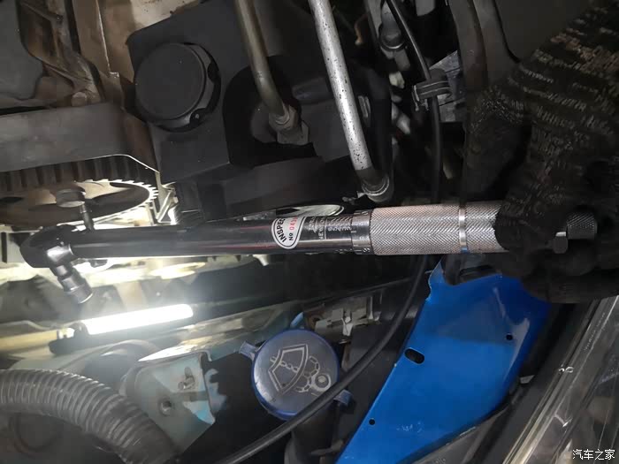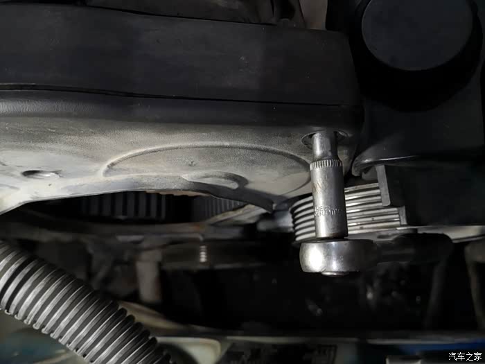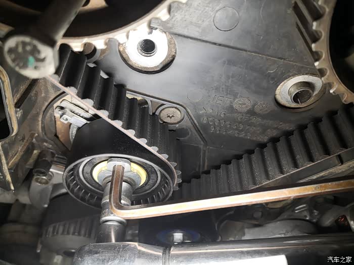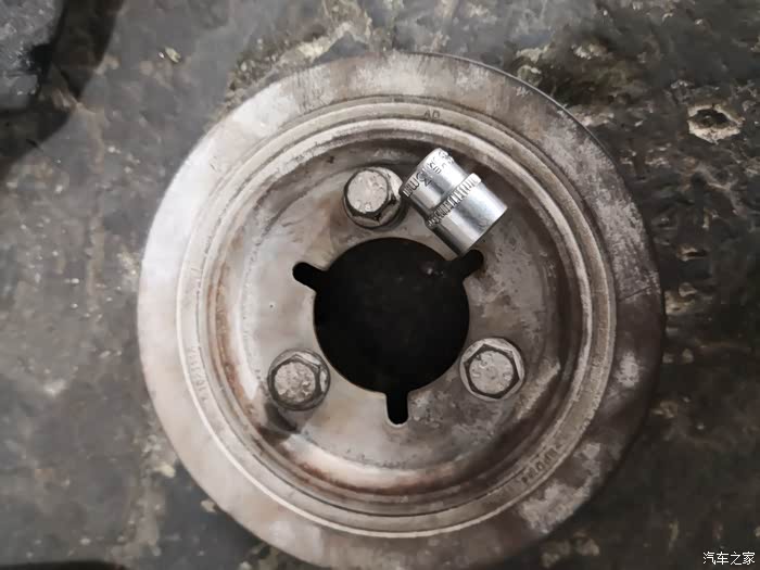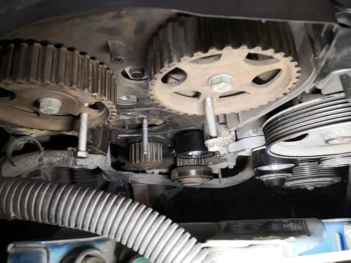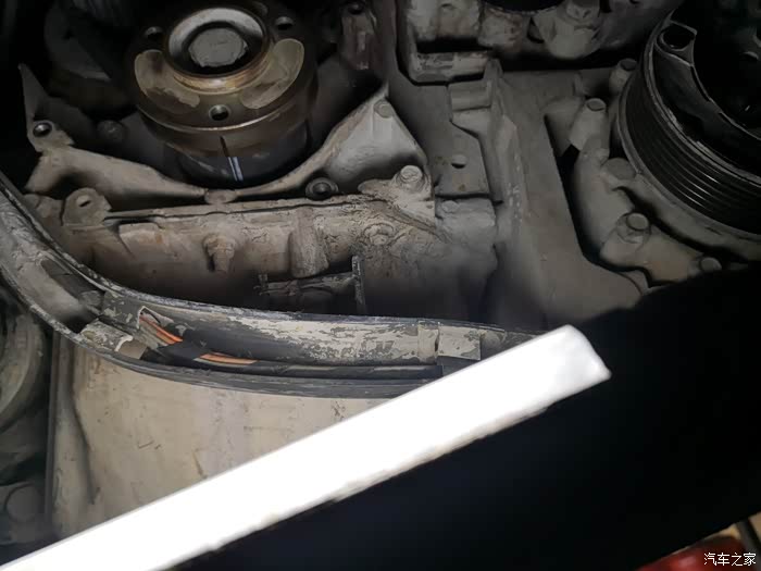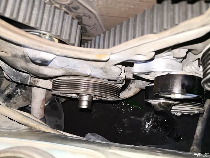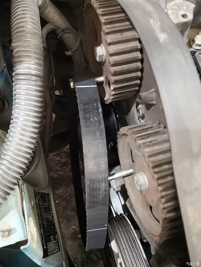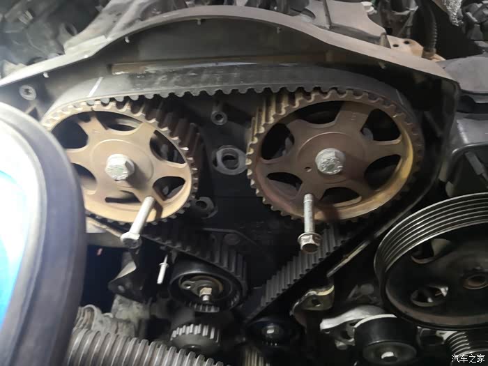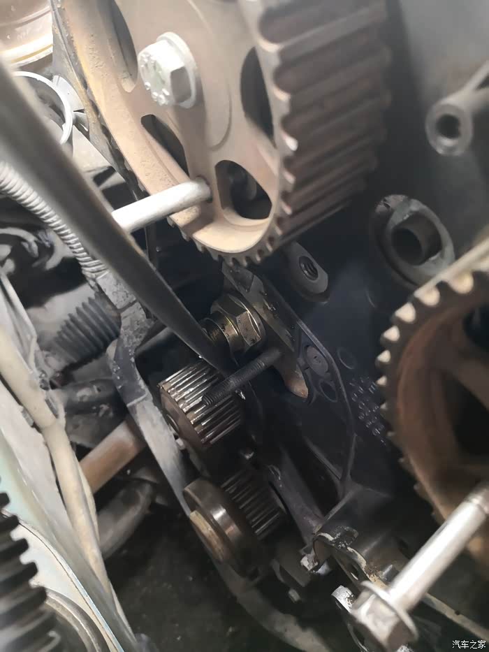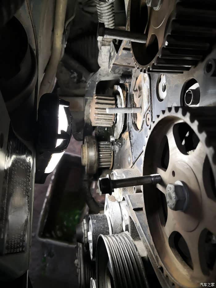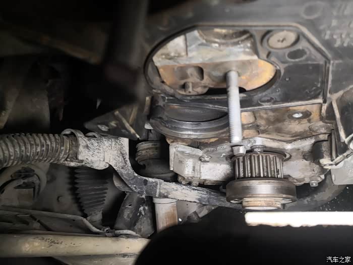 上次更换过正时皮带,这次轻车熟路,到了拆水泵环节时只能,因没有做拆卸工具,只能暴力拆解,等以后有时间再做一个专用工具,要不费力费时。