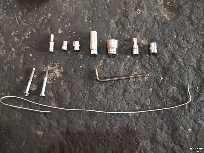 拆装水泵所需工具 套筒6、10、13、16、22、34,E14,T50,8内六角扳手,5-60扭力扳手一把,40-240扭力扳手一把,M8螺丝2只(定位正时皮带轮),铁丝一根(定位飞轮),小飞、中飞、大飞各1把,铁锤1把,加长一字螺丝刀一把。