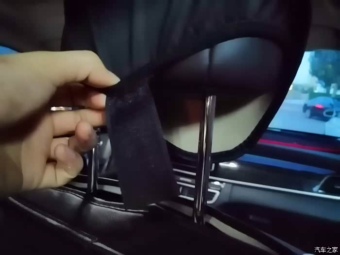 放在头枕上面,里面有个魔术贴,固定粘好