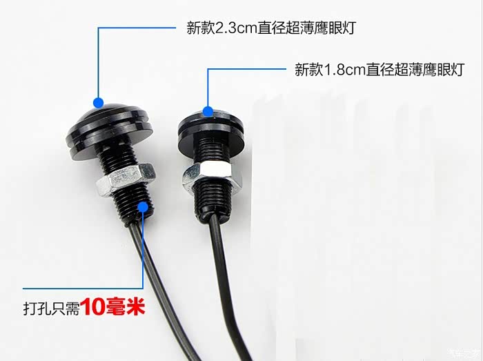 某宝10几块钱一对的高亮鱼眼LED灯,另加五金店购买4米2芯线。