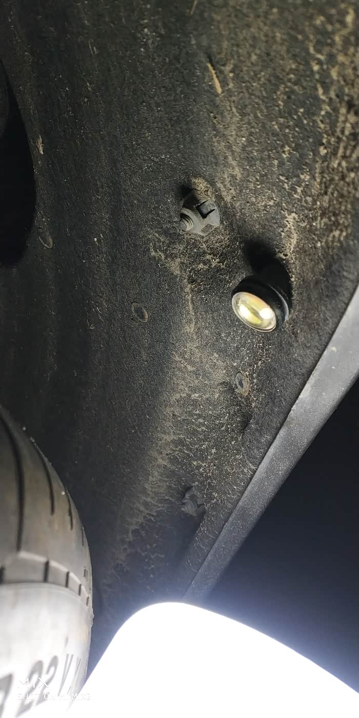 在轮眉处需拆开轮眉外塑料饰板,才能有空间穿线及在挡泥内衬板上挖孔固定LED灯,挖孔只需用剪刀钻个略小于灯座的孔即可。(此处无拍照,需脑补想象
