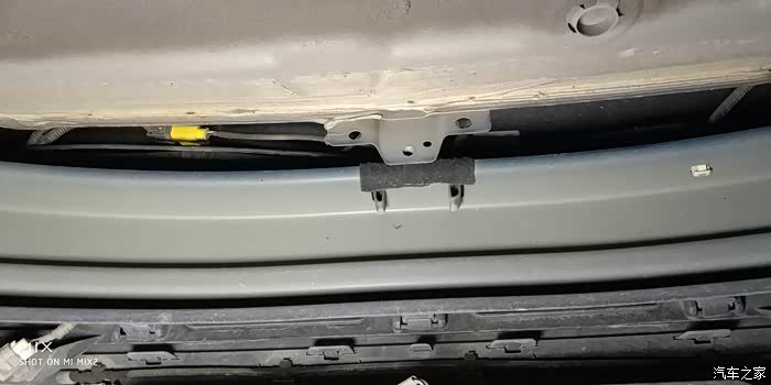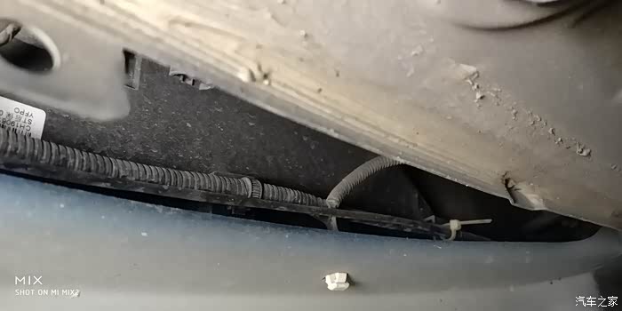 沿后防撞钢梁上方一路用扎带绑紧原有线束。
