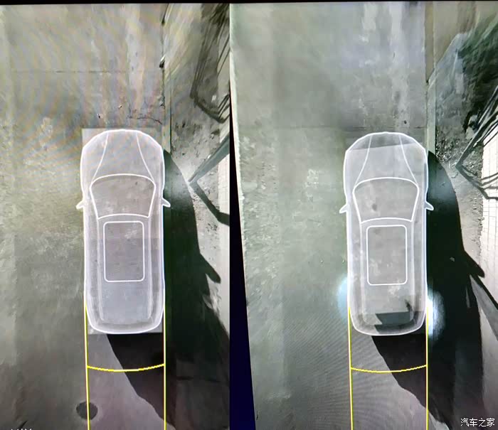 平板上看到的亮灯灭灯对比效果,没灯的话根本看不见车子右后方什么情况。