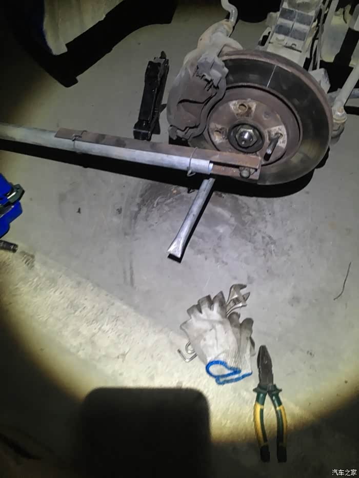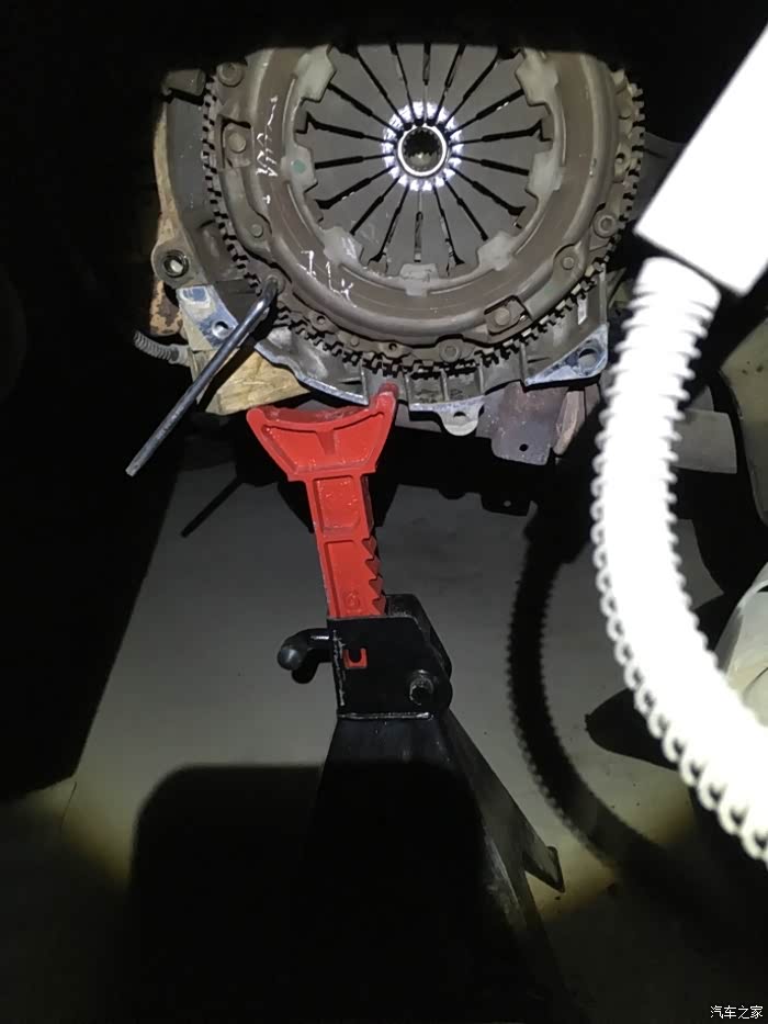 老婆帮我扶着铁管,帮我摇晃变速箱,好不容易才变速箱拿下来,压盘簧片也磨出沟了