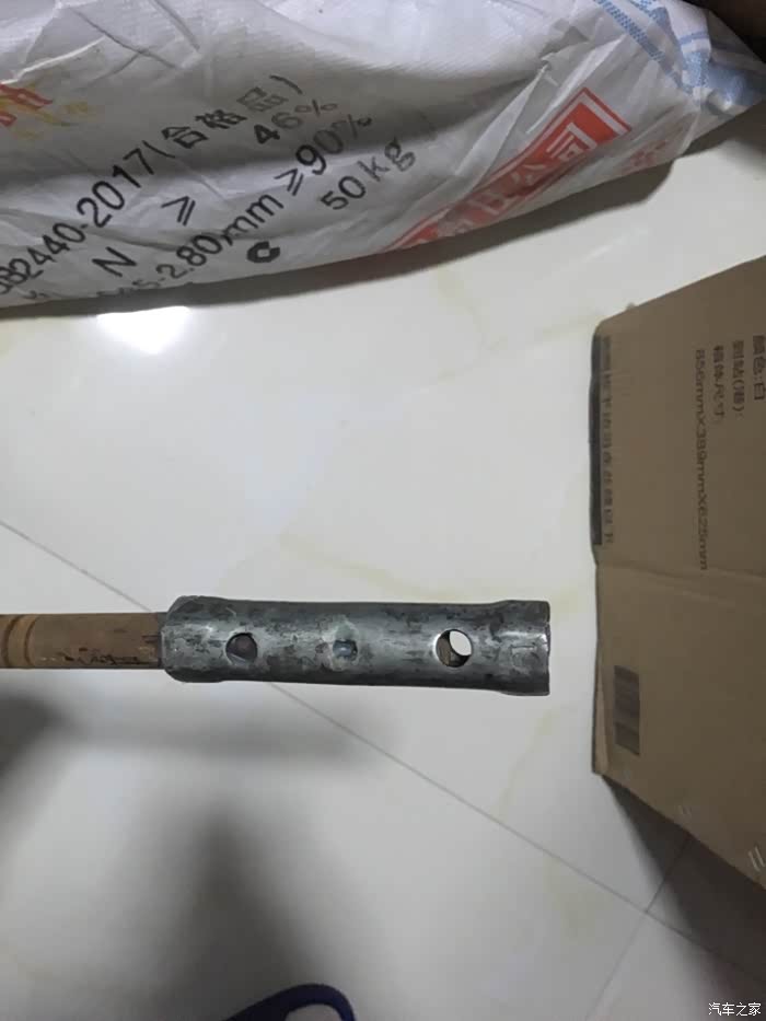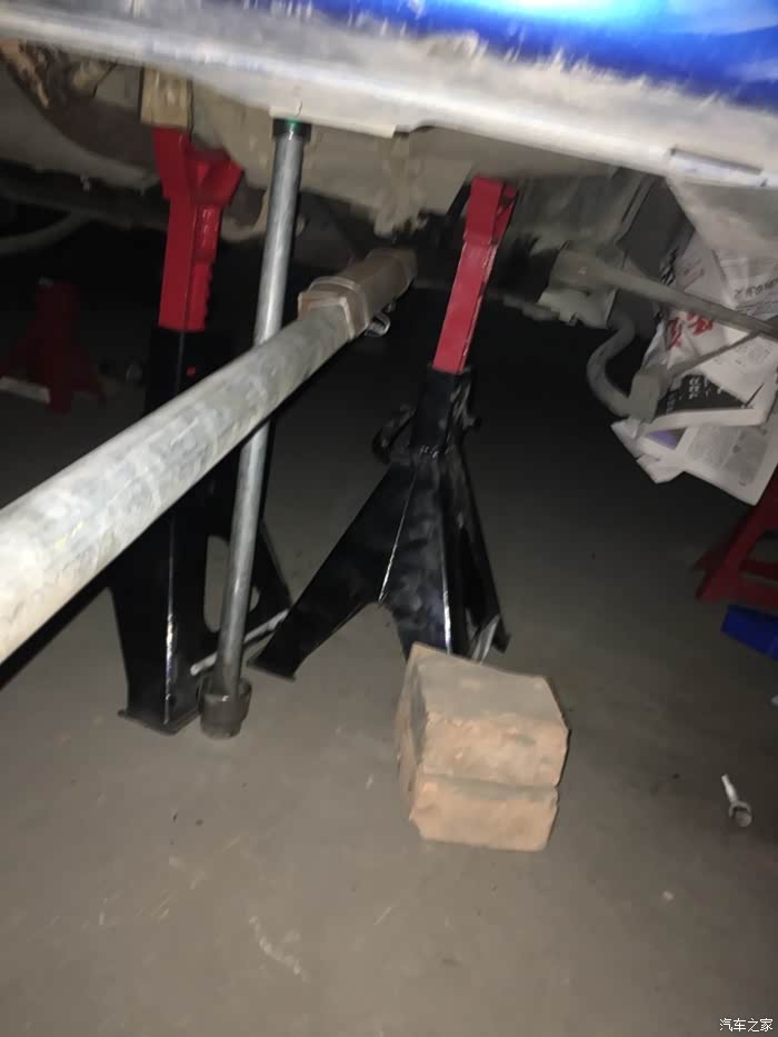 圆钢另一头用摩托车火花塞套头和AB胶固定,插上一把螺丝刀旋转就把变速箱吊起了。老婆负责旋转圆钢升降器,我负责对位。