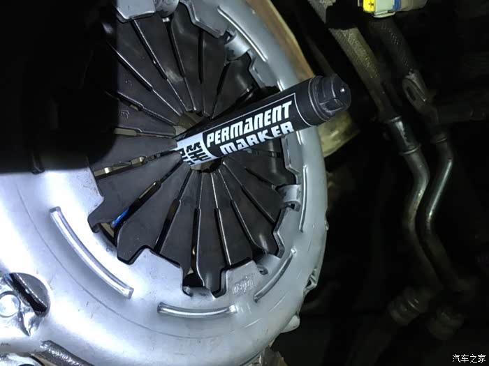 新的离合片和压盘换上了,用记号笔做了一个定位,细的地方用胶带纸补充成16mm,