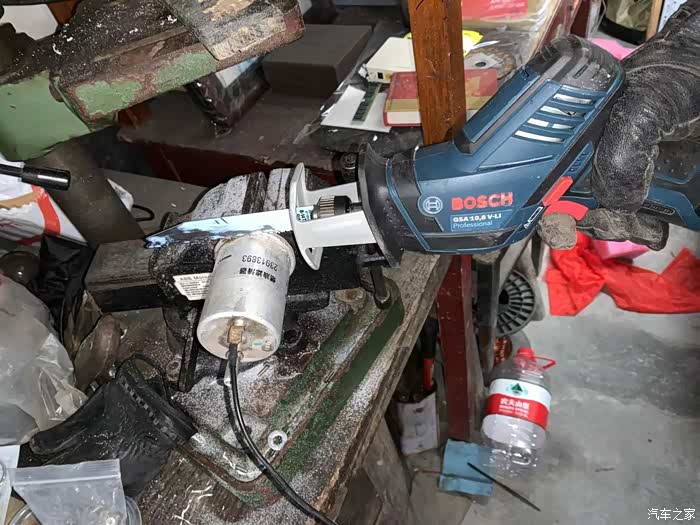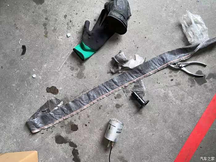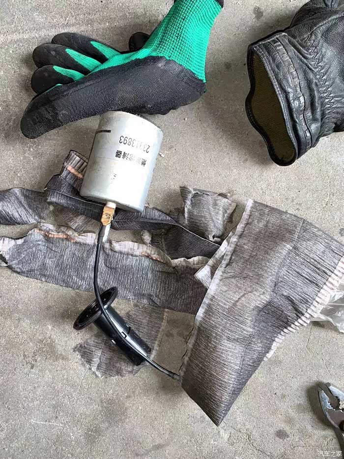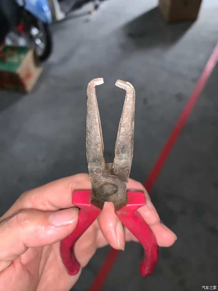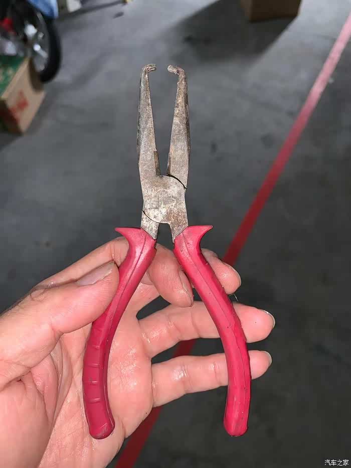 汽油滤芯的卡扣不好拆 自己把尖嘴钳的两个尖搞弯回来作为拆的工具。